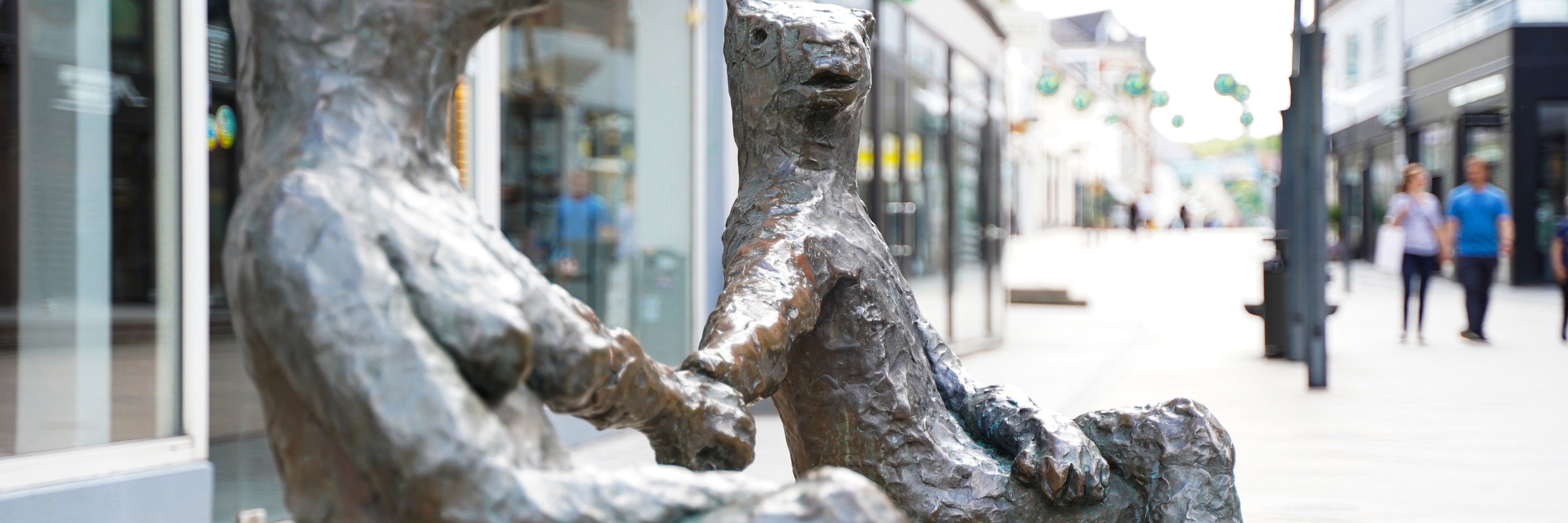 As part of the small trinity of sculptures on the corner of Torvegade and Orla Lehmansgade, there is a bench opposite Midgårdsbrønden (the Midgard Well), where a couple sits holding hands. The couple may well be the Horse Man from Midgårdsbrønden and Englekatten, when they may have been a young couple in love.