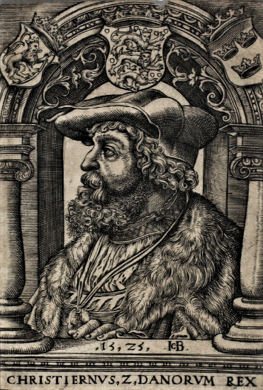 Billeder - 1: Kong Christian 2. (Det Kongelige Bibliotek) 2: Rekonstrueret kort over Vejle ca. 1627 (Nationalmuseet) 3: 'Christian II i fængslet på Sønderborg Slot' malet af Carl Bloch (1834–1890) (Statens Museum for Kunst). Klik for at se hele billedet.