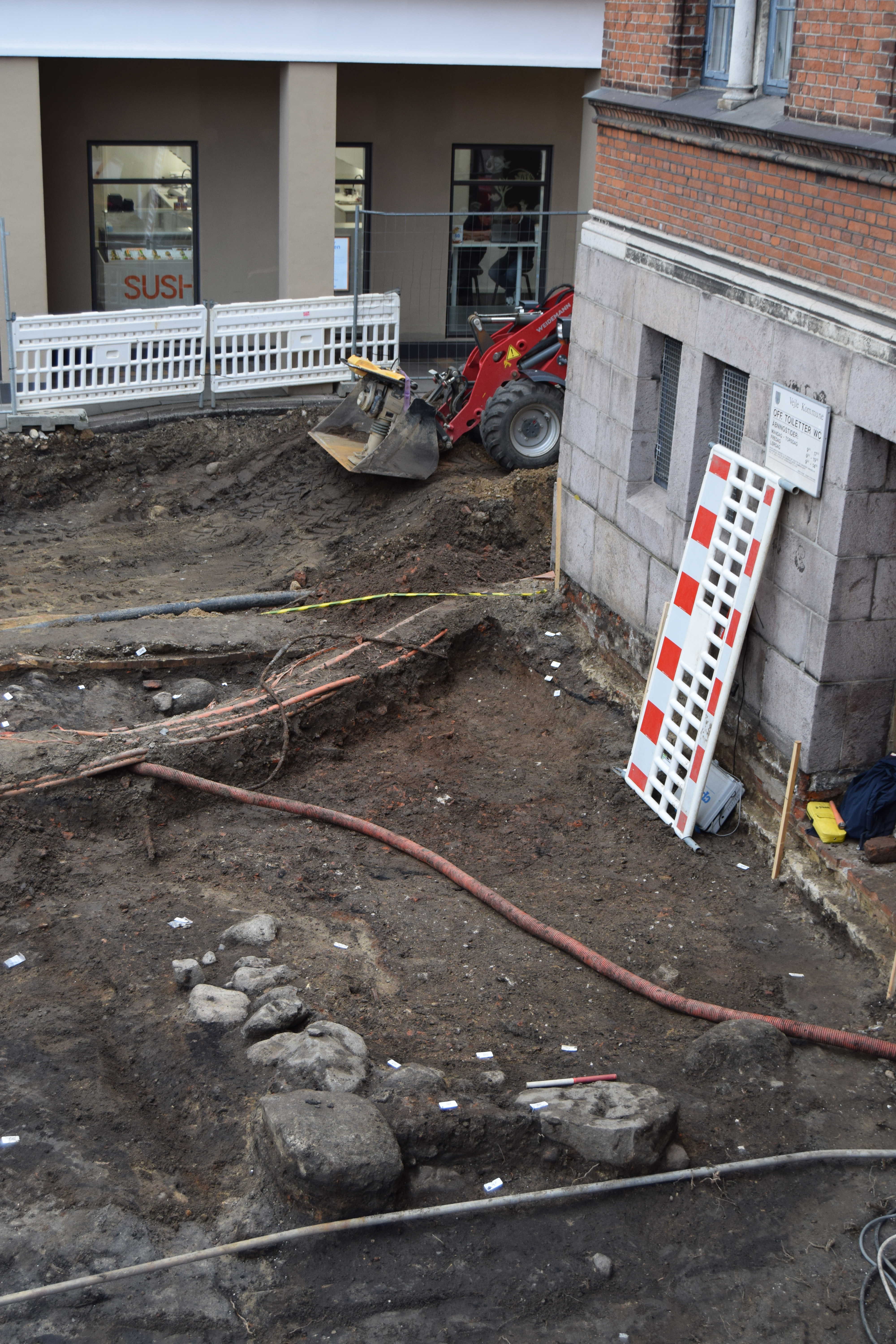 Sammen med piberne er fundet fundamentrester fra et hus. Arkæologerne ved ikke, hvem der har boet i huset, eller hvad der er foregået der, men et kvalificeret gæt er, at der har været en form for udskænkningssted, hvor 1600-tallets vejlensere har kunnet få sig en pibe tobak og et krus øl. Dette underbygges af, at alle stumperne fra kridtpiberne er fundet inden for husets fundamenter og nærmest ingen uden for.