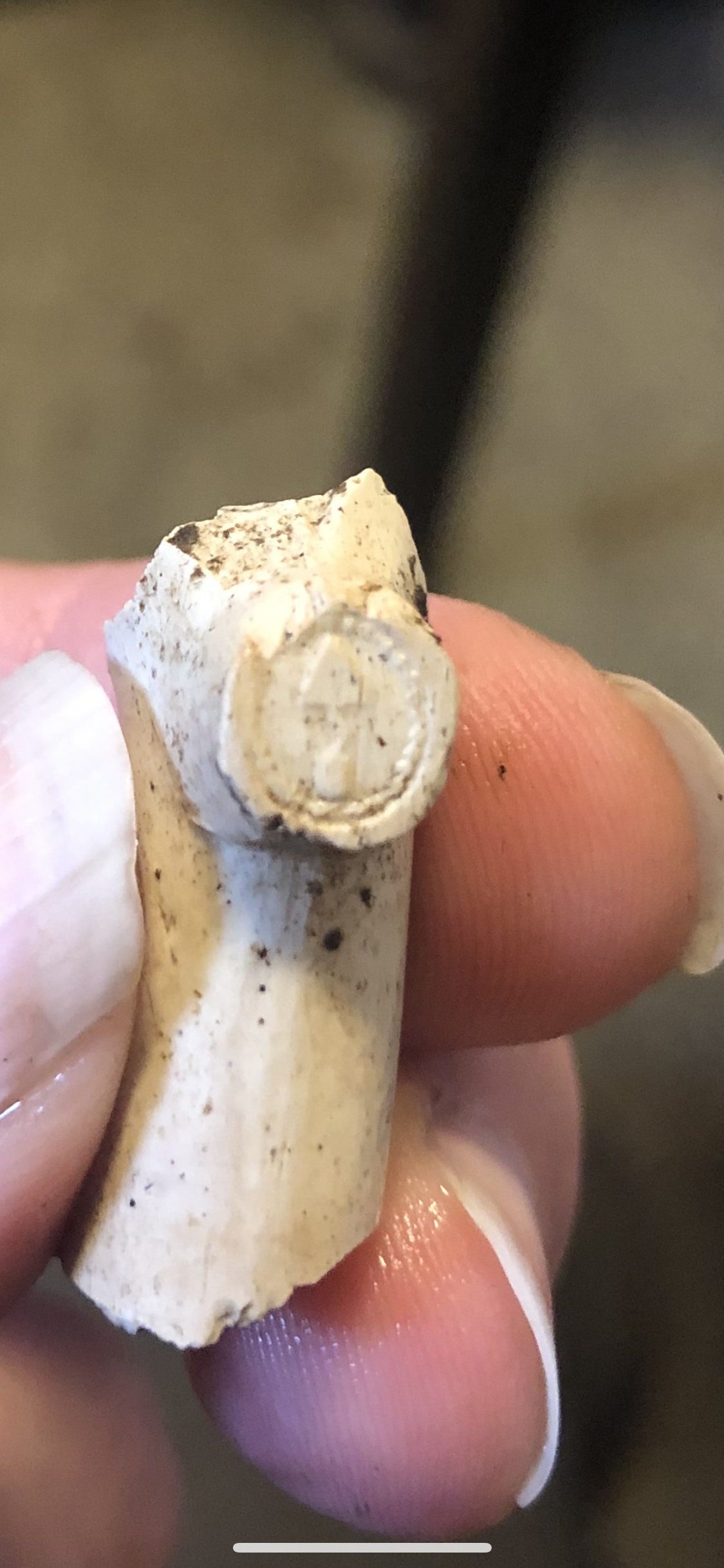 Kridtpiben har ofte en hæl. Hælen er den cirkelrunde cylinder under hovedet. Arkæologerne kan foretage dateringer ud fra hælens udformning og størrelse, men der er en del usikkerheds-elementer ved denne metode.