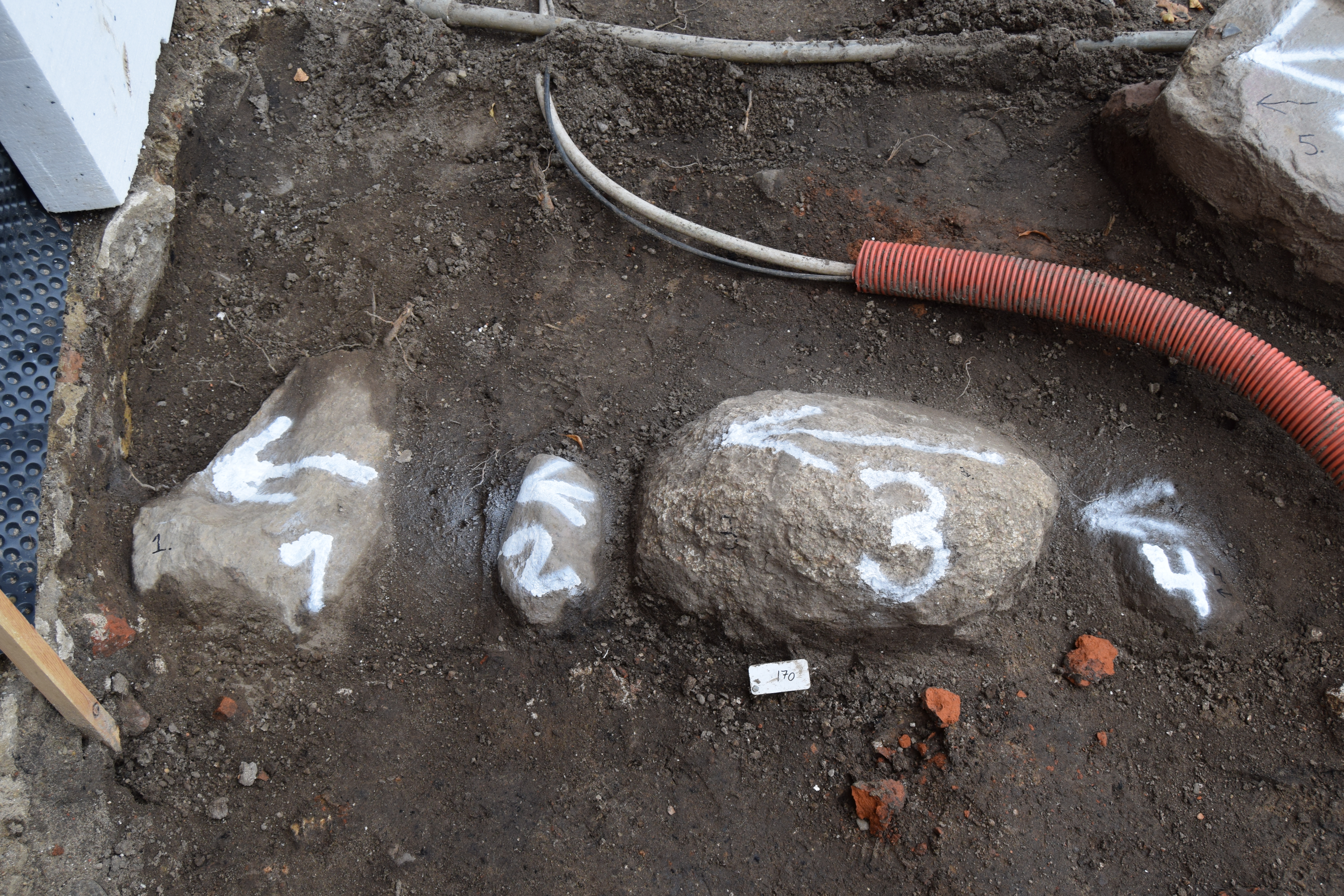 Når du står på Rådhustorvet i dag foran døren til toilettet, så vil du se, at der er nogle af stenene der skiller sig ud fra de nye og de genbrugte brosten. Det er sten fra fundamentet til huset, som er blevet taget op i forbindelse med udgravningen, da de ikke kunne blive liggende i jorden. Stenene blev nummereret og målt ind for at man kunne lægge dem tilbage på plads i niveau med den nye brolægning. Det eneste der er gjort med dem er, at de er blevet skåret over for at få en jævn trædeflade. Dermed er husets historie blevet bevaret i det moderne torv.